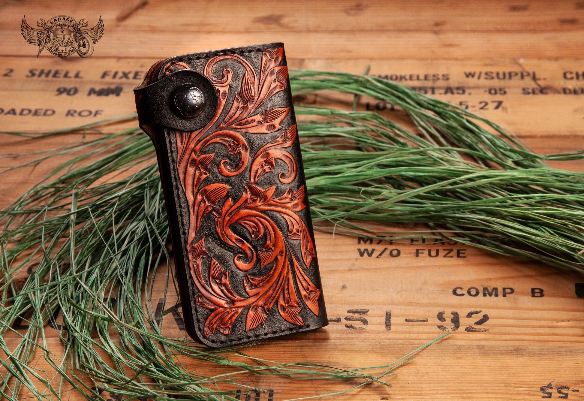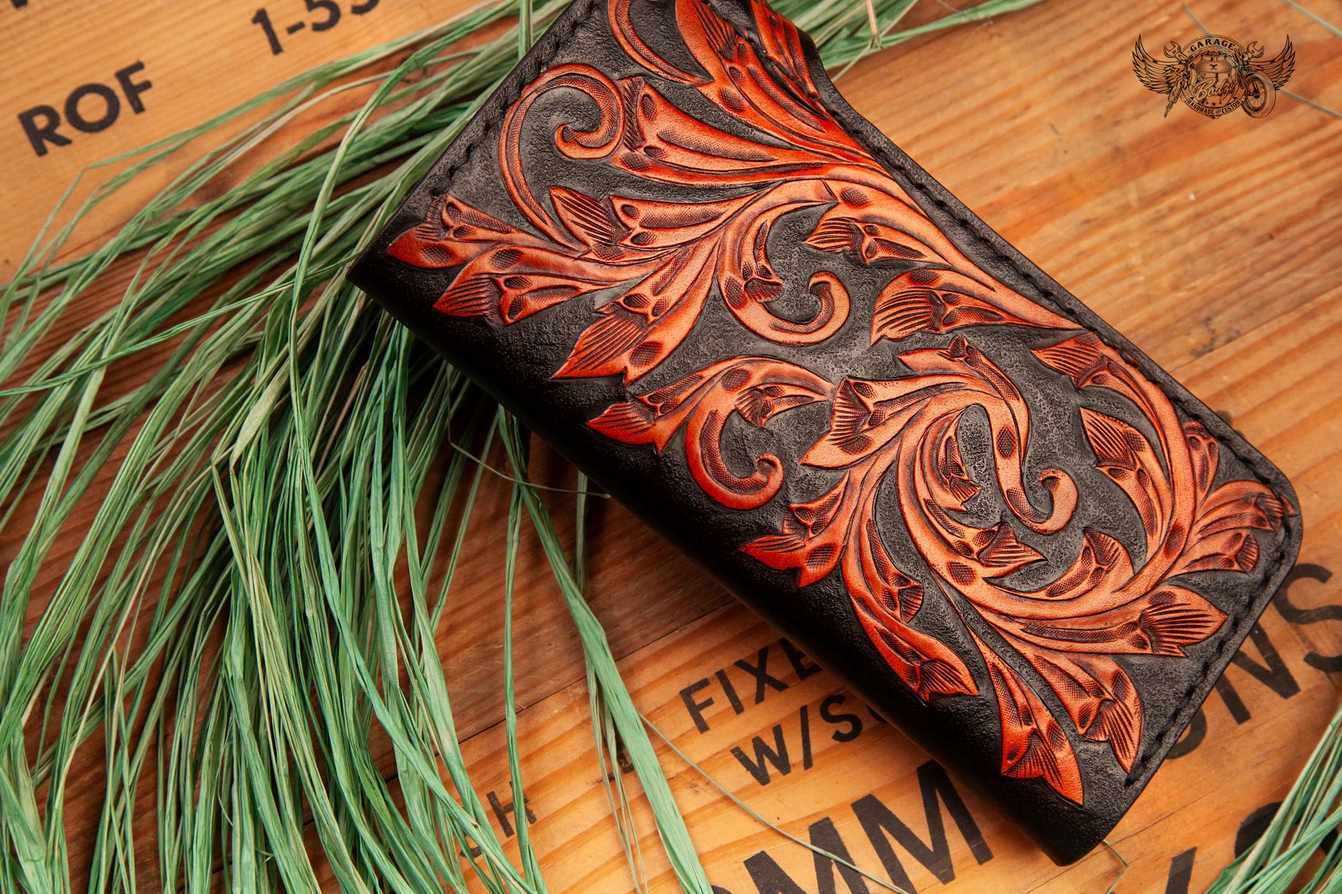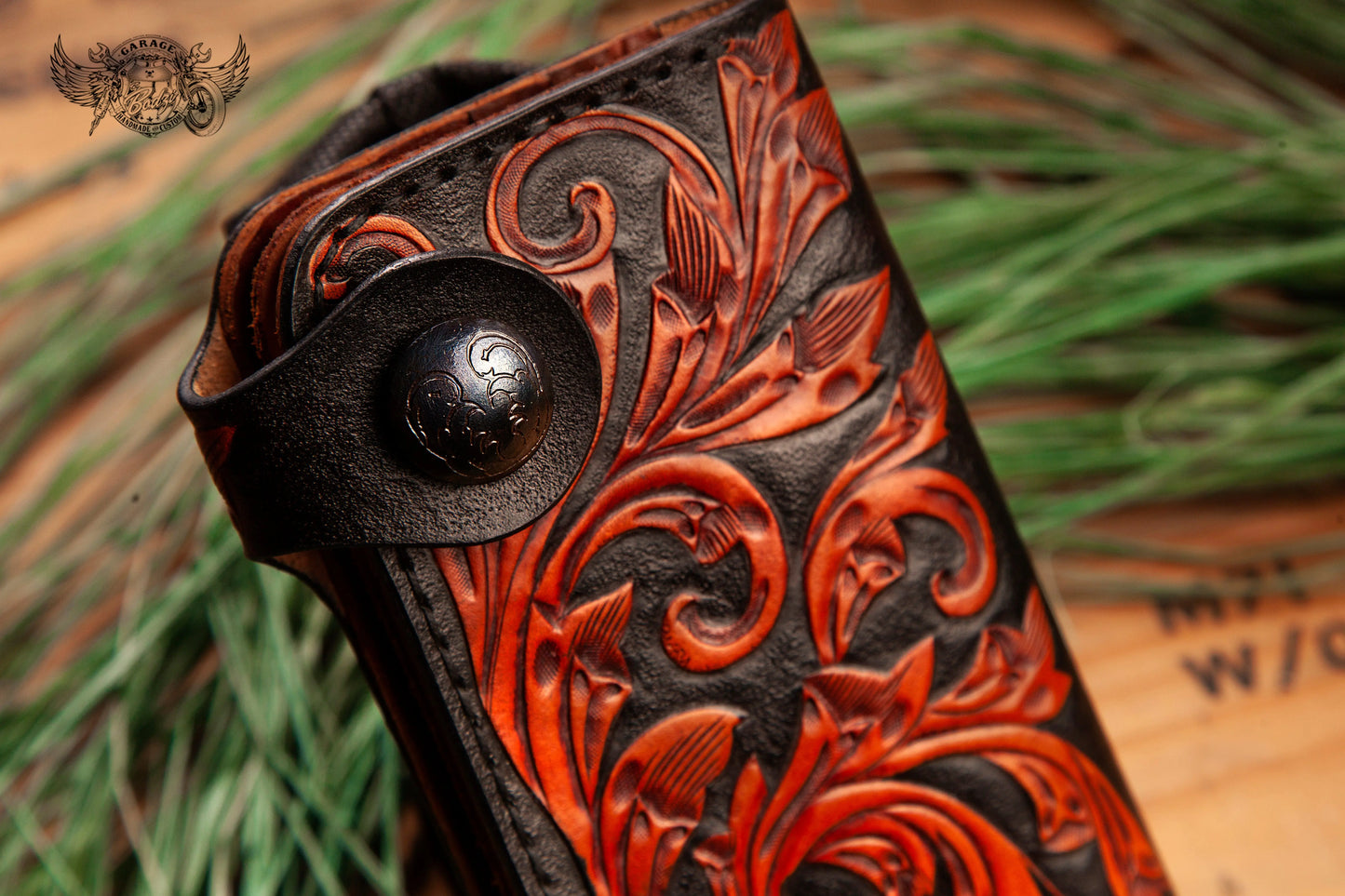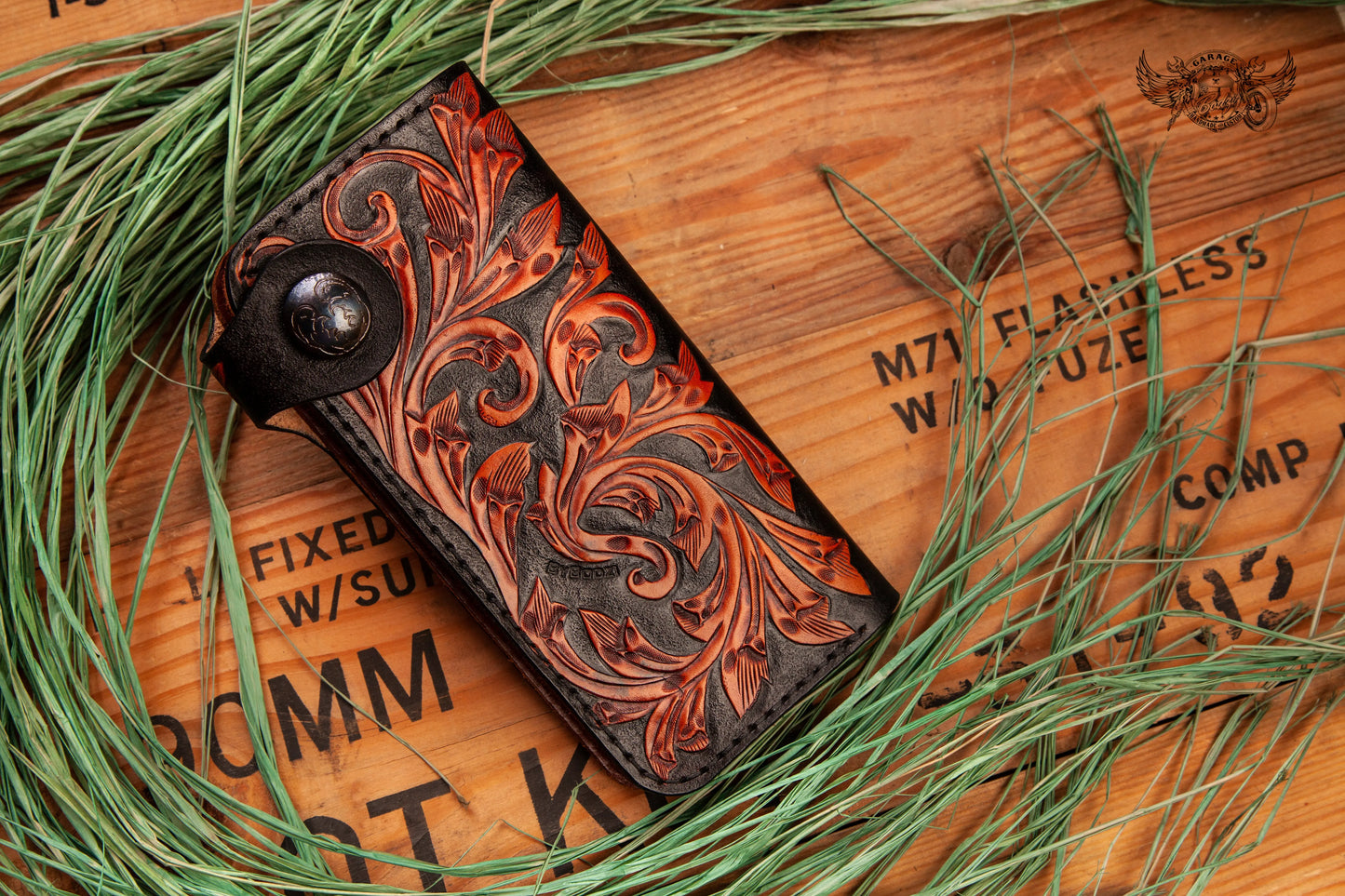 - Hand-tooled full grain leather